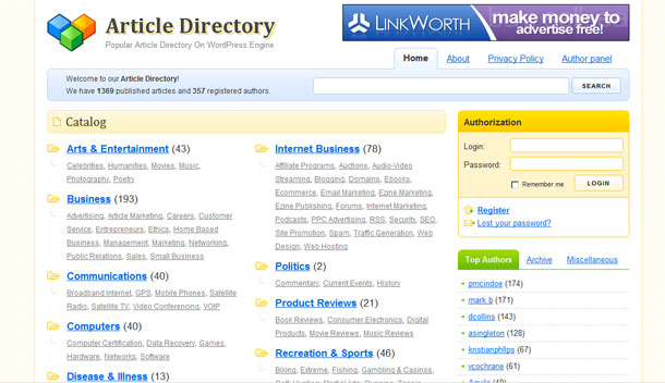 Este tema da vuelta a su instalación de WordPress en un directorio del artículo.