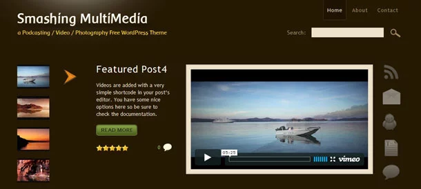 Este tema fue diseñado especialmente para los podcasters, fotógrafos y usuarios, que ahora pueden añadir fácilmente vídeos e imágenes, la tasa de ellos y mostrarlos en su propio blog de WordPress. Tiene un tema principal y un tema infantil fácilmente personalizable. Este tema de WordPress viene con archivos en capas PSD, una guía de ayuda visual y está totalmente traducido listo para traducirlo a su idioma de destino.