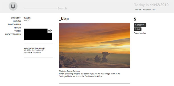 Ulap es un tema muy minimalista cuatro columnas con barras laterales estáticos.