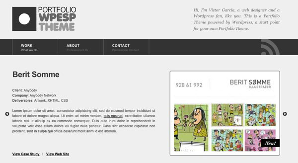 WPESP la cartera es un tema minimalista diseñado principalmente para artistas, fotógrafos, diseñadores, y otros que necesitan más de un escaparate de la cartera por su trabajo. Combina los beneficios de las actualizaciones fácil y frecuente con el diseño y la interfaz de usuario favorable a las obras de navegación visual.