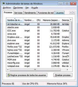 Una vez aquí, dentro de la pestaña Procesos podremos encontrar el registro de todos aquellos que están corriendo en nuestro sistema. Debemos prestar atención a las columnas CPU y Memoria porque nos revelarán el consumo de recursos de cada uno de ellos y nos ayudarán a identificar a aquel que puede estar ralentizando el equipo.