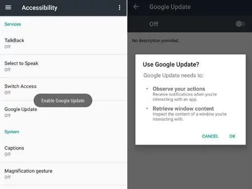 Para lograr sus fines, este malware atrapa a Android otorgándose privilegios en los servicios de accesibilidad de Android. Para hacer esto, muestra mensajes de actualización falsos de Google, y si el usuario acepta, les da acceso a los permisos de Android. Una vez que la trampa ha funcionado, se conecta de forma remota con un servidor para lanzar ataques, pero también para comenzar a recopilar datos.