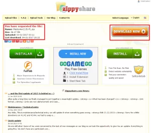 ZippyShare nos brinda los datos como Nombre del archivo y tamaño que son importantes para continuar las descarga la velocidad de descarga sera según su velocidad de Internet.