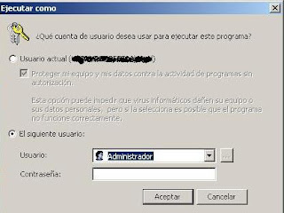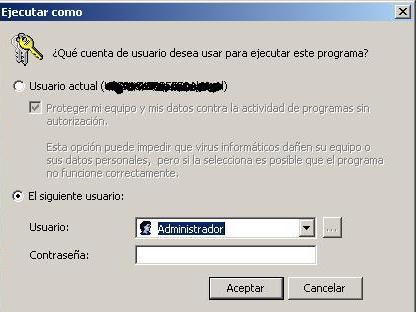 Ahora aparecerá el típico panel de ejecutar como usuario o como administrador. Esta es una caracteristica de Windows XP y Windows 7, y sirve para ejecutar un software con permisos de administrador.