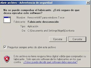 Ahora vamos a ver cómo usar el Remove WAT para seguir fastiadindo a los de Microsoft, con un crack que ha sido probado con éxito esta misma semana, en el mismo ordenador donde se instalo Windows 7, y aplico el crack. Lamentablemente mi amigo desoyó mis advertencias e hizo una actualización y los de Microsoft lo han pillado con el Windows pirata, provocándole el molesto pantallazo negro y el odioso símbolo del pentagrama del WAG. Lo digo porque tiene forma de estrella y es un pentágono.