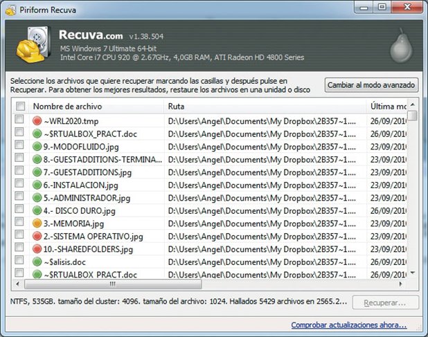Si hemos utilizado alguna vez CCleaner ya conoceremos a la gente de Piriform. Sus productos, además de ser gratuitos, suelen ser muy eficientes y están dotados de un buen acabado gráfico. La aplicación que ahora nos interesa es Recuva (www.piriform.com/recuva), dirigida a la recuperación de archivos borrados en un PC con Windows, de la Papelera de reciclaje, tarjeta de memoria, reproductor MP3, etc.