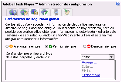 Esta solución se viene arrastrando desde el problema de visualización de la currúcla CCNA 3.1 y consiste en modificar la configuración del Flash Player. Para visualizar las currrículas CCNA 4.0 Discovery y Exploration, si no les funciono la solución para IE, deben instalar Firefox (también les dejo el Firefox Portable por si no son muy adeptos al zorrito), instalar el Flash Player y modificar la configuración del Flash Player siguiendo estos pasos: