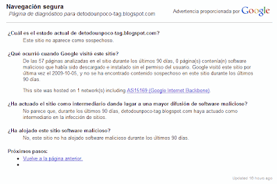 Si deseas saber si en un sitio puedes navegar de manera segura puedes hacer esta prueba aunque ahora diferentes navegadores como el Google Chrome y algunos antivirus no sólo te avisan sino te impiden ingresar al sitio sospechoso. ( Puedes hacer click en la imagen superior y verás que la navegación en DE TODO UN POCO es considera segura ).